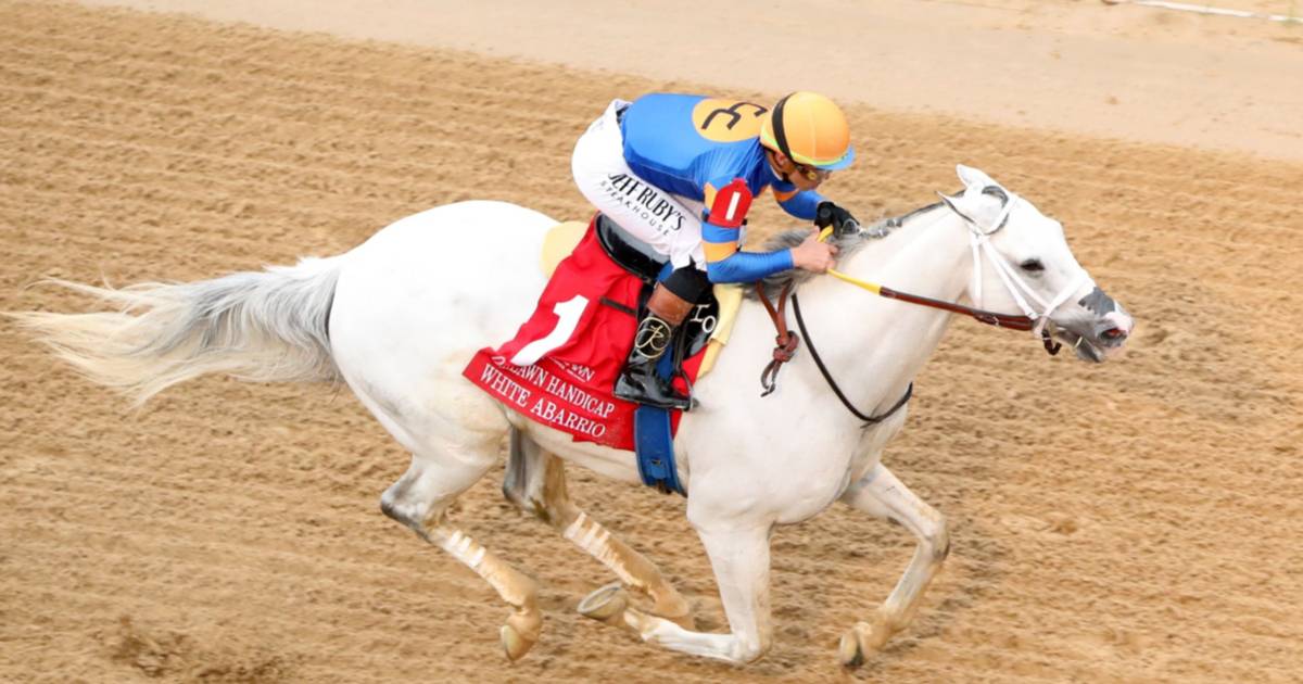 - 4El caballo White Abarrio ganó el Oaklawn Handicap G2 en Oaklawn Park.